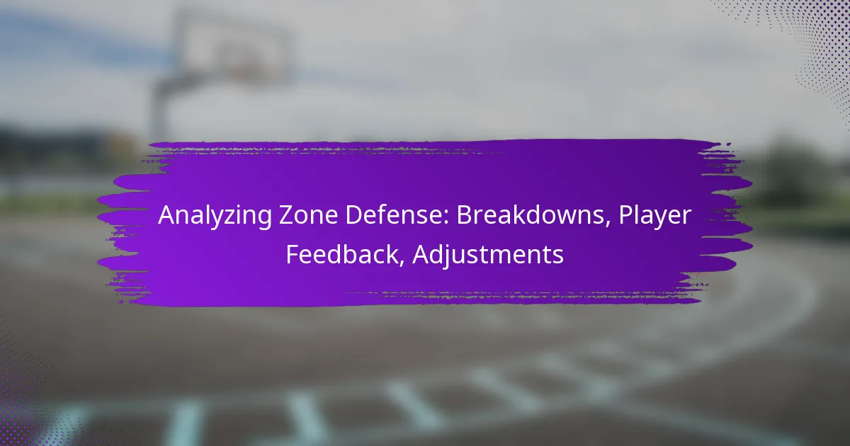 Zone defense is a strategic approach in basketball and football that emphasizes area coverage over individual matchups, demanding high levels of teamwork and spatial awareness. Analyzing breakdowns in this defensive strategy involves pinpointing coordination weaknesses and communication lapses that can lead to scoring opportunities for opponents. By systematically evaluating player performance and incorporating feedback, teams can make necessary adjustments to enhance their defensive effectiveness.