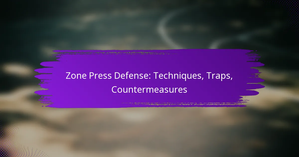 Zone press defense employs specific techniques to disrupt the opposing team’s offensive flow by applying pressure and forcing turnovers. Key elements include strategic player positioning, effective movement patterns, and clear communication among team members.